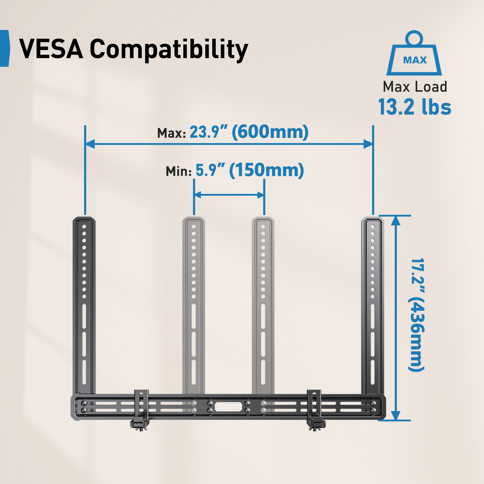 - Weight Capacity: Supports soundbars and speakers up to 13.2 lbs.