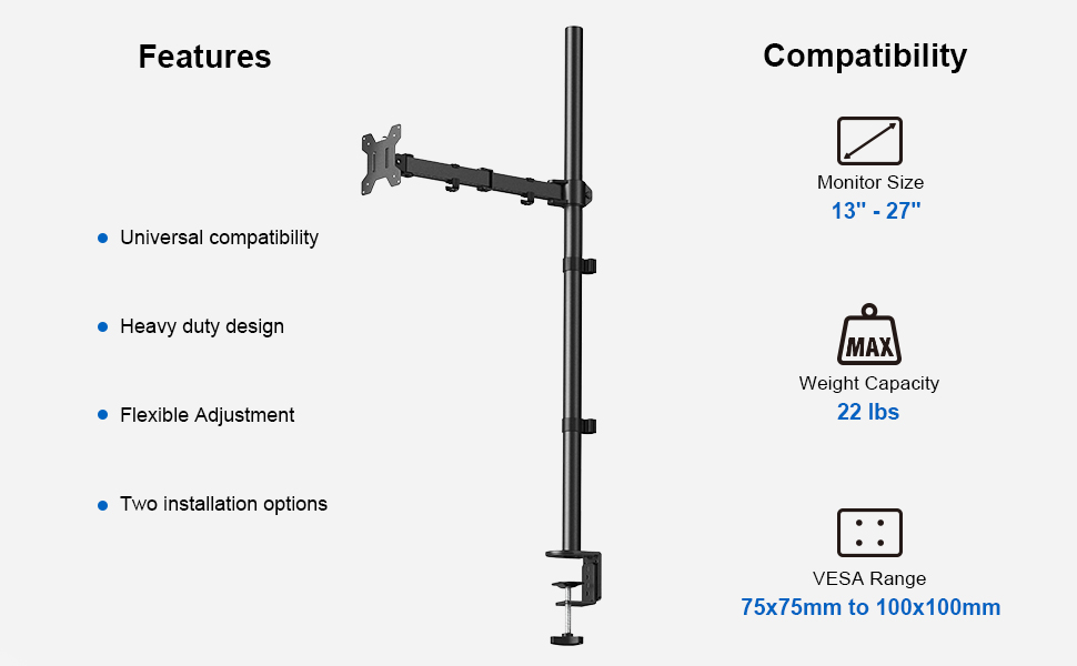 | C-Clamp Desk Thickness | 0.75"-3.5" |