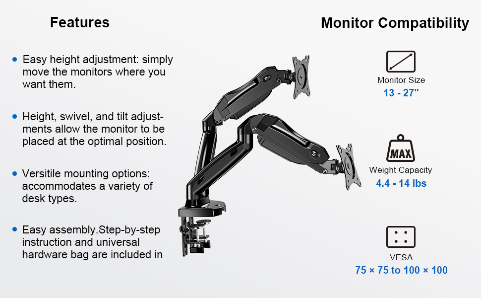 | Weight Capacity Per Arm | 4.4 to 14 lbs. |