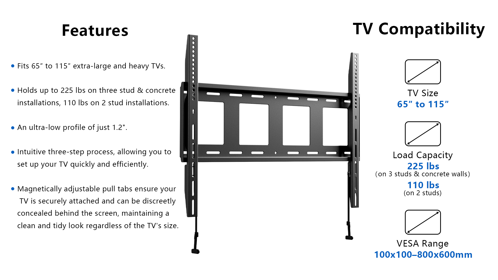 | TV Size Range | 65” – 115” |