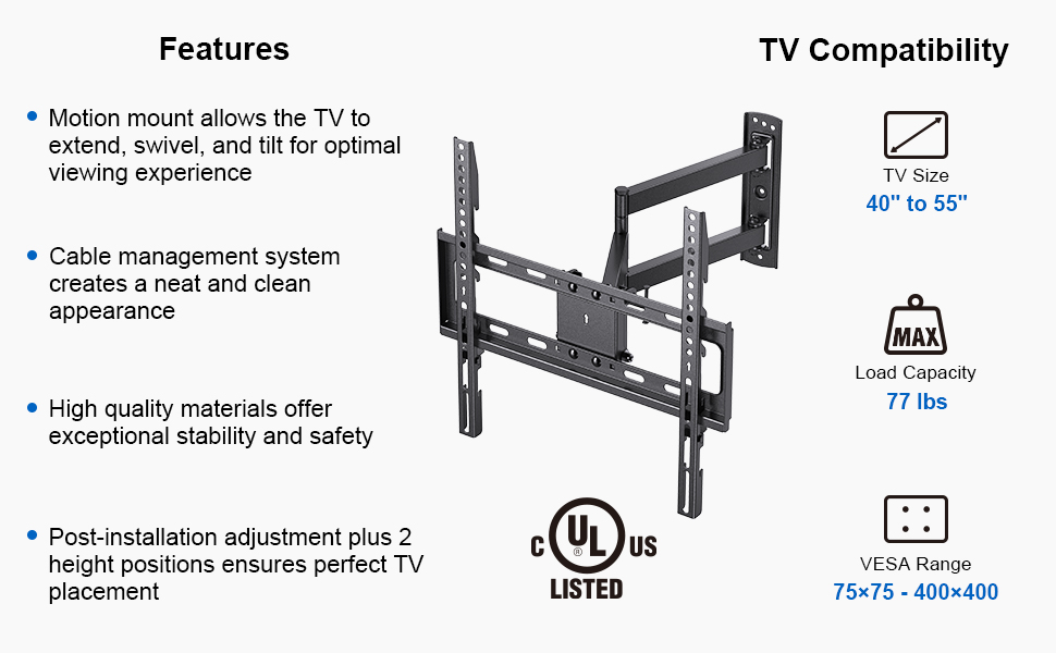 | TV Size Range | 40" – 55" |