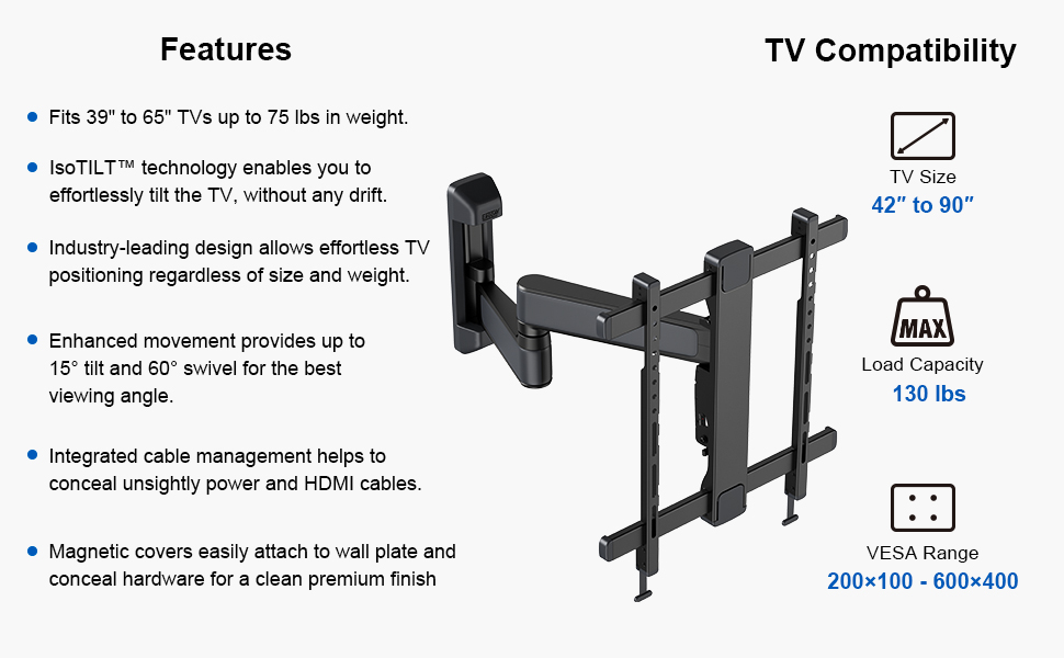 Motion Mount with Dual Arms for TVs 42″ to 90″