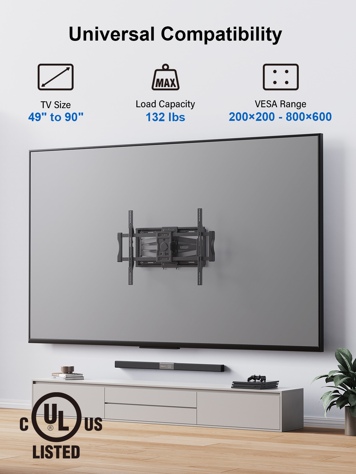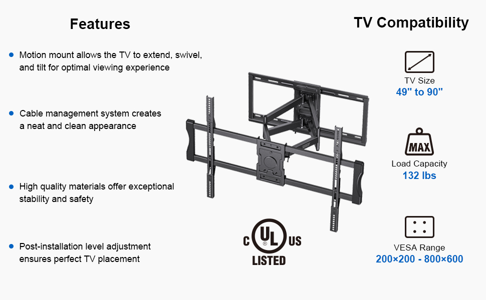 ERMMS2-01B is a single stud full motion TV mount that fits 19” to 43” TVs up to 45 lbs. Enhanced movement provides up to 15-degree tilt and 60-degree swivel for the best viewing experience. Integrated...