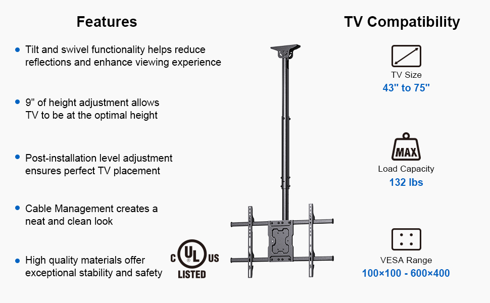 | Swivel Range | 360 °, Ceiling Bracket 128 ° |