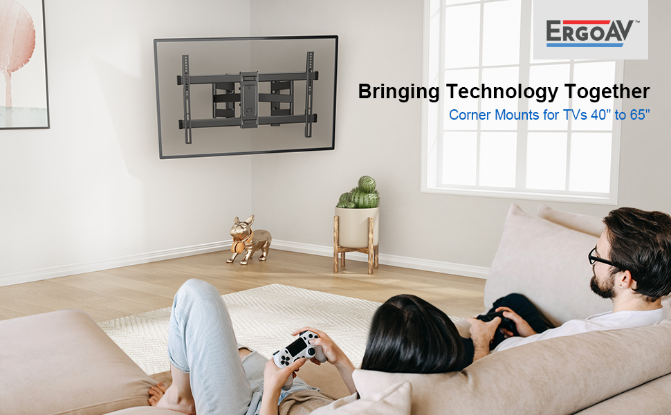 The ERMSL1-01B corner mount fits most TVs 40″ to 65″ and up to 99 lbs. Unique design allows for up to a 65″ TV to be mounted in the corner. Motion Mounts allow the TV to be easily extended away from the wall, swiveled left or right and tilted, making it possible for you to get optimal viewing in any seating location. Level adjust allows the TV to be properly leveled after installation. Safety tested and UL certified.