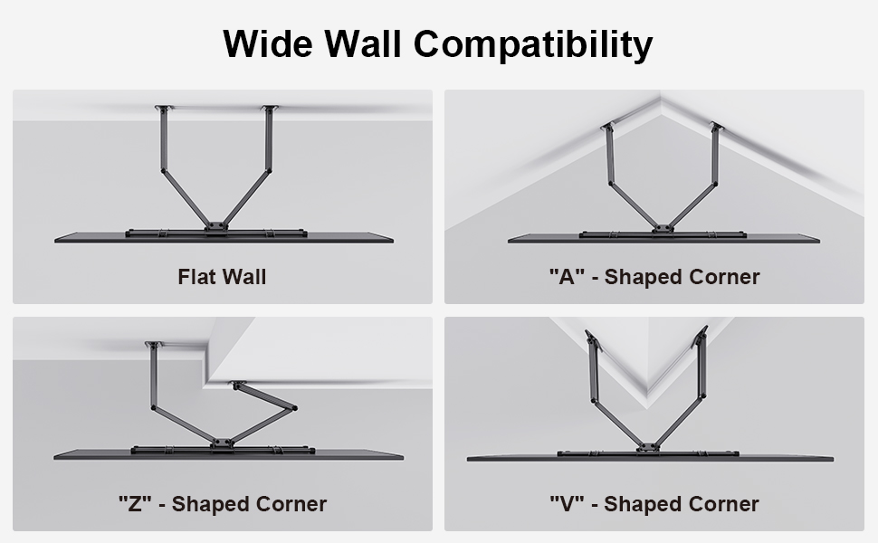 - Unique design allows for up to a 65″ TV to be mounted in the corner