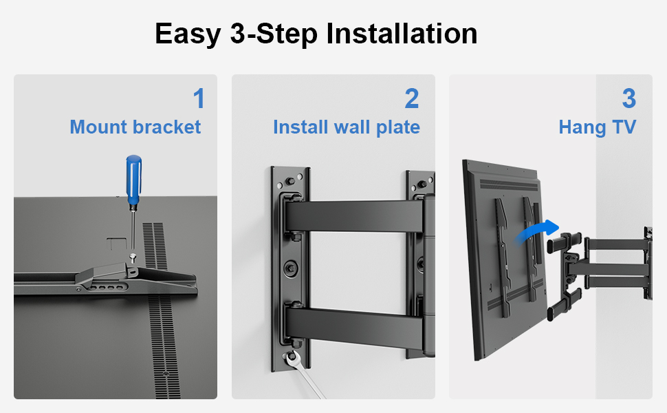 - Easy three step installation. Step-by-step instruction, wall plate template, and universal hardware bag are included in the package