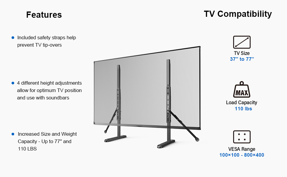 Tabletop TV Stand with Swivel for up to 86″ TVs